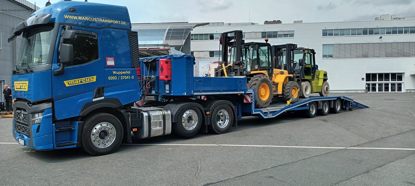 No challenge is too big for us – thanks to our comprehensive equipment and decades of expertise, we can handle even the most demanding machine transports. With our modern fleet of heavy-duty trailers, low-loaders and special semi-trailers, we can handle complicated special transports and move even exceptionally large or heavy machines safely to the desired destination. By the way: You can also hire the equipment used for this, such as truck-mounted loading cranes, and use it for other purposes.